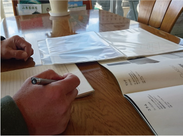 お客様のご要望をもとに作成いたしましたお墓のデザインを図面でご提案、石のサンプル板もお見せいたします。